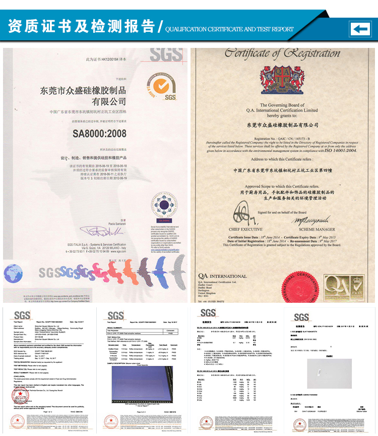眾盛硅膠的資質(zhì)證書和檢測的報告