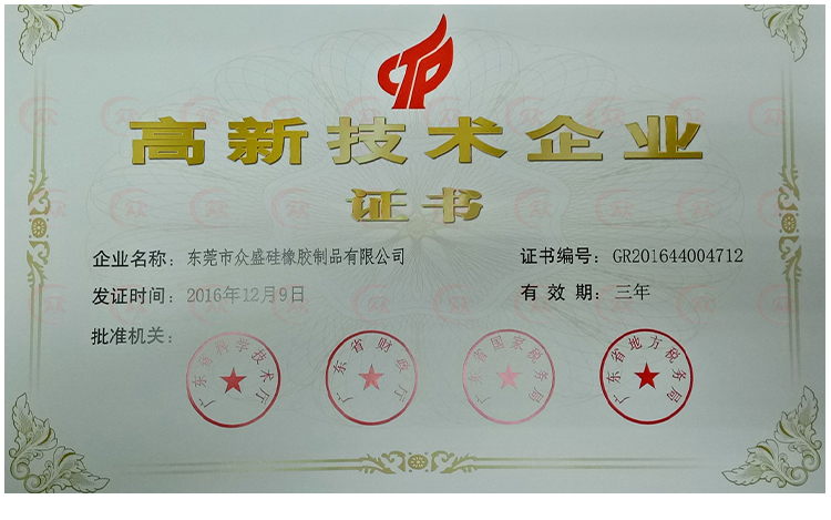 眾盛硅膠的資質(zhì)證書與檢測報(bào)告承上,供查閱 眾盛硅膠公司榮獲國家高新技術(shù)企業(yè)證書