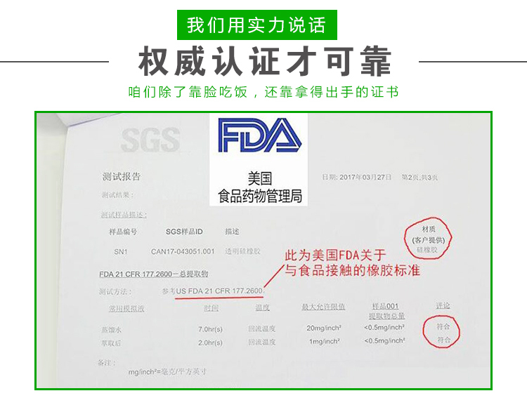 用實力說話才是硬道理,美國食品藥物管理局認證原材料硅橡膠可與食品直接接觸